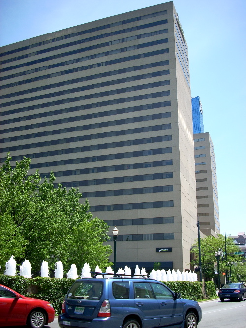 At a time when many cities have struggling downtowns, Lexington is fortunate to have one that is thriving. In addition to beautiful small parks, such as Triangle Park shown at right, modern hotels as shown above, and entertainment facilities hosting basketball, football, rodeos, plays, concerts and circuses, the downtown also holds a dozen restaurants, some of which are among the finest in Kentucky. There's a good mix. You can find Contemporary, French, Caribbean, Steak, Thai, Italian, Classic, Indian and Pizza. A few are good lunch stops, and three are Special Occasion stops. For uniformity purposes, we begin all directions from the Hyatt, even though many of you may be staying at the Raddison or Gratz Park Inn. But since all directions involve heading east on Vine or Main Street, you can easily pick up.