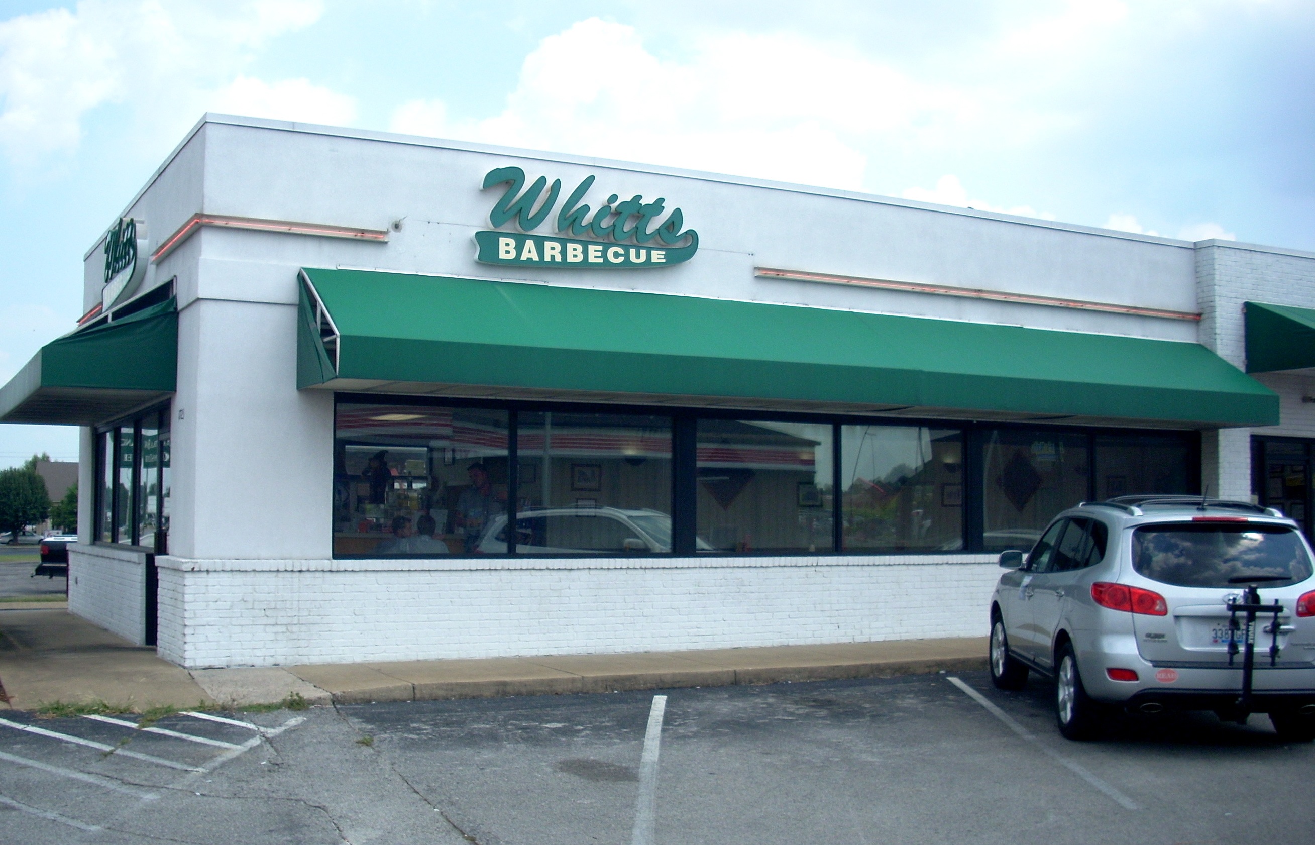 Whitt's Barbeque specializes in old fashioned hickory smoked pit barbeque. The core of their menu is Wet or Dry Ribs, Half or Whole Chicken, and your choice of Pork, Beef or Chicken sandwiches or plates. It's really a carryout place, with few tables and limited parking. As sides you can get Baked Potatoes, Fried Apples, Baked Beans, Cole Slaw, Corn on the Cob, Macaroni & Cheese and Potato Salad. Each plate comes with two sides. Dessert options are Pie of the Day or Banana Pudding. This is classic Western Kentucky style barbecue, quite different from the Monroe County style of the Smoky Pig out on 31W North. Smoky Bones also does hickory smoking but their Florida Corporate style leans more toward a Carolina flavor, and of course with a full menu they spread themselves over many different foods, while Whitt's specializes in just good local barbeque. They could make the claim to being the only pure Western Kentucky style bbq outlet in town, not counting the entrepreneurs who tow trailers around town and show up at malls and football games. 270-846-4448. | ![]() |