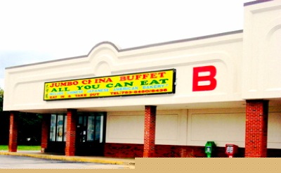 Jumbo China Buffet is Bowling Green's newest Chinese cafeteria style restaurant. It features Cantonese, Szechuan and Hunan items, plus Japanese Sushi, Thai Shrimp, Alaskan Crab Legs and Chilean Salmon. They use 100% cholesterol free vegetable oil and reduced Monosodium Glutamate. There are the usual 100+ items including all the usual favorites : General Tsao's Chicken, Dragon & Phoenix, Mongolian Beef and Chicken Chow Mein. They offer a lunch buffet from 11:30 - 3:30, a dinner buffet from 4:00 - 10, and carryout anytime. Like most Chinese buffets, there is so much to choose from it's hard to pick favorites. However, we think their Hot & Sour is their best soup, the Boneless Spare Ribs are their best appetizer, and their various Chop Suey dishes are their best of the regular entrees. And we think their Chef's Specialties menu contains their very best entrees. We really like their Seafood Delight (shrimp, king crab, squid, scallops with vegetables, all in a white wine sauce), Happy Family (pork, chicken, beef, shrimp, king crab and vegetables sauteed with special seasoning), and Subgum Wonton (king crab, sliced chicken, roast pork, shrimp, mushrooms, bamboo shoots, water chestnuts, baby corn and broccoli sauteed and served with a crispy wonton), each for $9. |