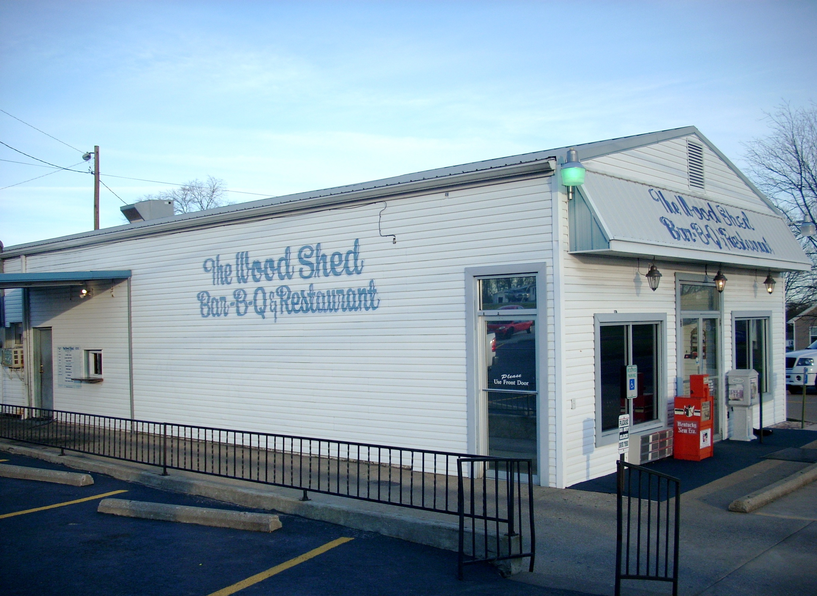 The Wood Shed is Hopkinsville's contribution to Barbeque. It's a down to earth place with seating for 80 and lunch and dinner crowds of twice that many. You start with a bowl of Burgoo and a slice of Cornbread. Since Gabe's closed in Owensboro, this is the best Burgoo in Kentucky, except for what they serve at Keeneland and Churchill Downs. (Burgoo is a stew of pork, vegetables and whatever the chef has on hand. BBQ outlets usually use BBQ ingredients. Burgoo is slow simmered in a cast iron pot.) Another signature item is their BBQ Mutton Sandwich, with Slaw. But the serious eating is the full scale BBQ for dinner. You can get Pork, Ribs, Chicken or Mutton. They also serve up a fine Catfish, Pork Chop, Liver & Onions, Dumplings, Stuffed Green Pepper, Meat Loaf, Country Fried Steak, Salisbury Steak and Pepper Steak on various days of the week. Sides include Corn on the Cob, Potato Salad, Green Beans, Sweet Potatoes, Mac & Cheese, Butter Beans, Turnip Greens, Black Eyed Peas, and Hominy. There's Chili in season, and sometimes Beef Stew. On the west side of town on Route 80, the Wood Shed closes at 8 p.m. |