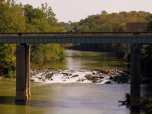 From the Barren River Bridge on the North to the southern city limits, 31W functioned as the first bypass around downtown Bowling Green. In the 1960s, it marked the eastern edge of the city. Growth is now out to the interstate, Scottsville road has become the main business artery, and 31W almost seems like the outer edge of "downtown," but the old state highway still has over 100 businesses and its own share of restaurants. As you circle around the city center, you can always glance up to your right and see "The Hill" and Western Kentucky University, the view in the photo above. The 31W bridge over the Barren River, built in 1930, is shown at right. When the water's right, kayakers like to run the drop, and the river is a favorite canoeing route. In the 1800s, paddlewheel steamboats came up from the Ohio River to Bowling Green. The city exists because this was the furthest upriver the boats could navigate, and their cargo and passengers had to be unloaded here. Other older bridges, both highway and railroad, have been updated and function now as pedestrian only walkways, as seen in the example upper right. Eight traditional sit down restaurants have closed in the last decade and been replaced by eight fast food outlets, but there are still six very good sit down restaurants on 31W. |