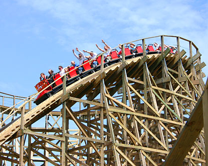 We define "Greenwood" as the neighborhood centering around Greenwood High School along Scottsville Road outside the interstate. There are 12 restaurants in this cluster, plus one further out in the Alvaton neighborhood. They're all franchises, but they're good ones. If you're staying at one of the interstate hotels or live in this area of town, there's no need to drive downtown or even to the other side of I-65. The photos here are the Western Kentucky University football stadium (home of the national champion division I-A Hilltoppers, who have since moved up to NCAA Division I), Greenwood High in overtime against Bowling Green High, and the Kentucky Rumbler nationally ranked wooden roller coaster at Beech Bend Amusement Park. |