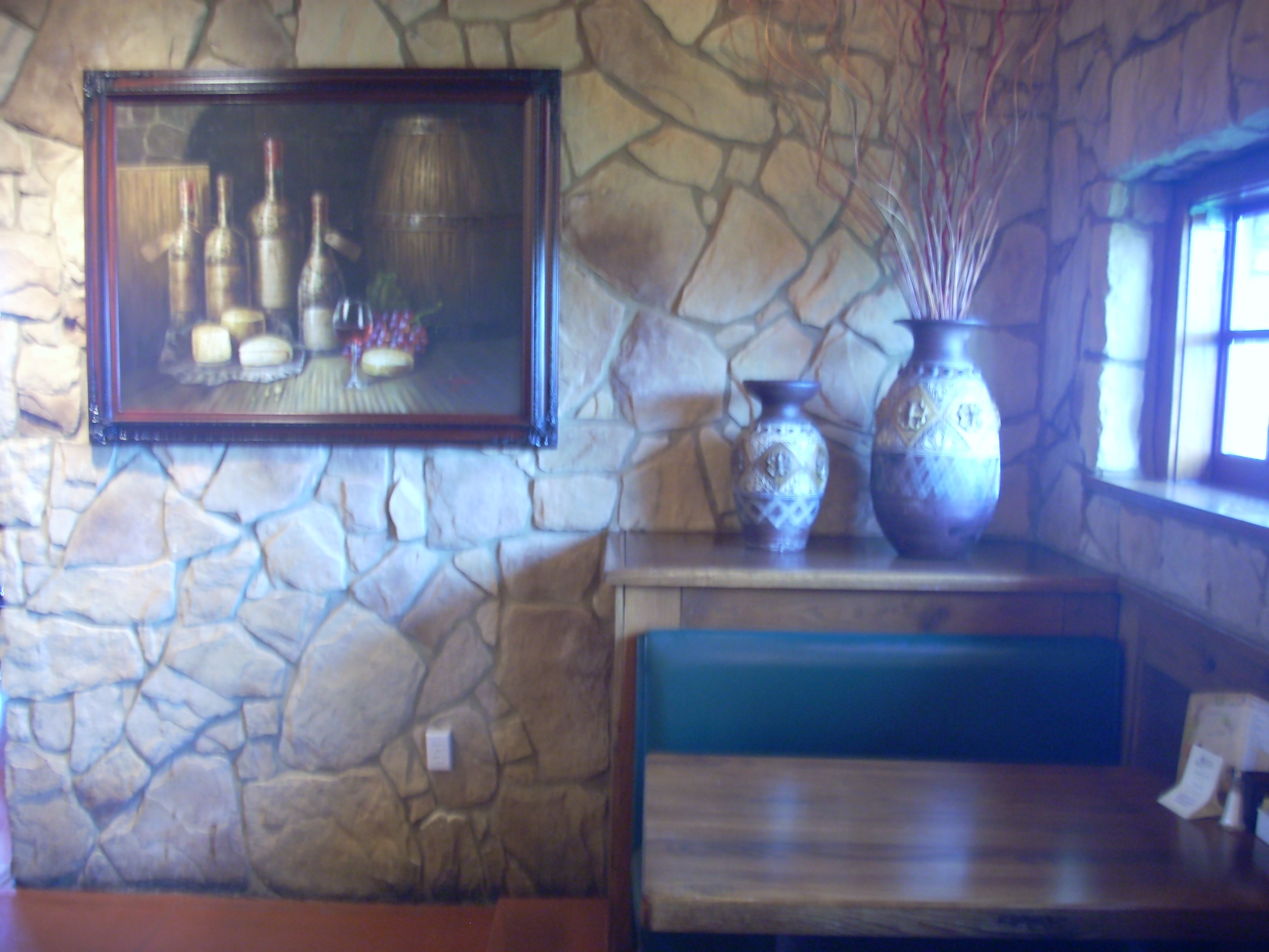 Petra has a huge advantage its rival Mediterranean restaurants in Lexington lack : room. The other three are confined to tight storefronts with less than a dozen tables. Petra has a huge facility, with a side room for private parties or dances, a bar in its own wing, and a patio, seen at right, wrapping around two sides for Hookah use. In addition to using that space for tables and booths, Petra has walls and nooks for two dozen Jordanian artifacts, as seen in the photos throughout these web pages. Eating here is thus a relaxing experience surrounded by authentic paintings, vases, swords, musical instruments, sculpture and other items. The restaurant is named for that legendary city carved out of a cliff in Jordan in 600 Before Christ. It was the capital of the Nabatean Empire. As such, Petra was a major intersection of the Middle East, attracting camel caravans from as far away as Africa, Asia and Europe. By a century after Christ, Petra had been overcome by the Roman Empire but remained the center of the Arab World. An earthquake in 363 A.D. destroyed the water system and rendered Petra uninhabitable. Abandoned, the city, in a slot canyon in the desert, was forgotten. It was rediscovered briefly by the Crusaders in the 12th Century, brought back to life for 50 years, then abandoned again. In 1812 Johann Ludwig, the Swiss explorer, rediscovered it and Western scholars have been exploring its treasures ever since. The city today is one of the world's great archaeological sites. It was named a World Heritage Site in 1985 and in 2007 was named one of the Seven Wonders Of The World. Most Americans and Europeans are familiar with it mainly because it was used in the filming of various Indiana Jones and other archaeological adventure movies. The shifting desert sands have erased much of Middle Eastern history. Petra is thus a priceless source of knowledge. |