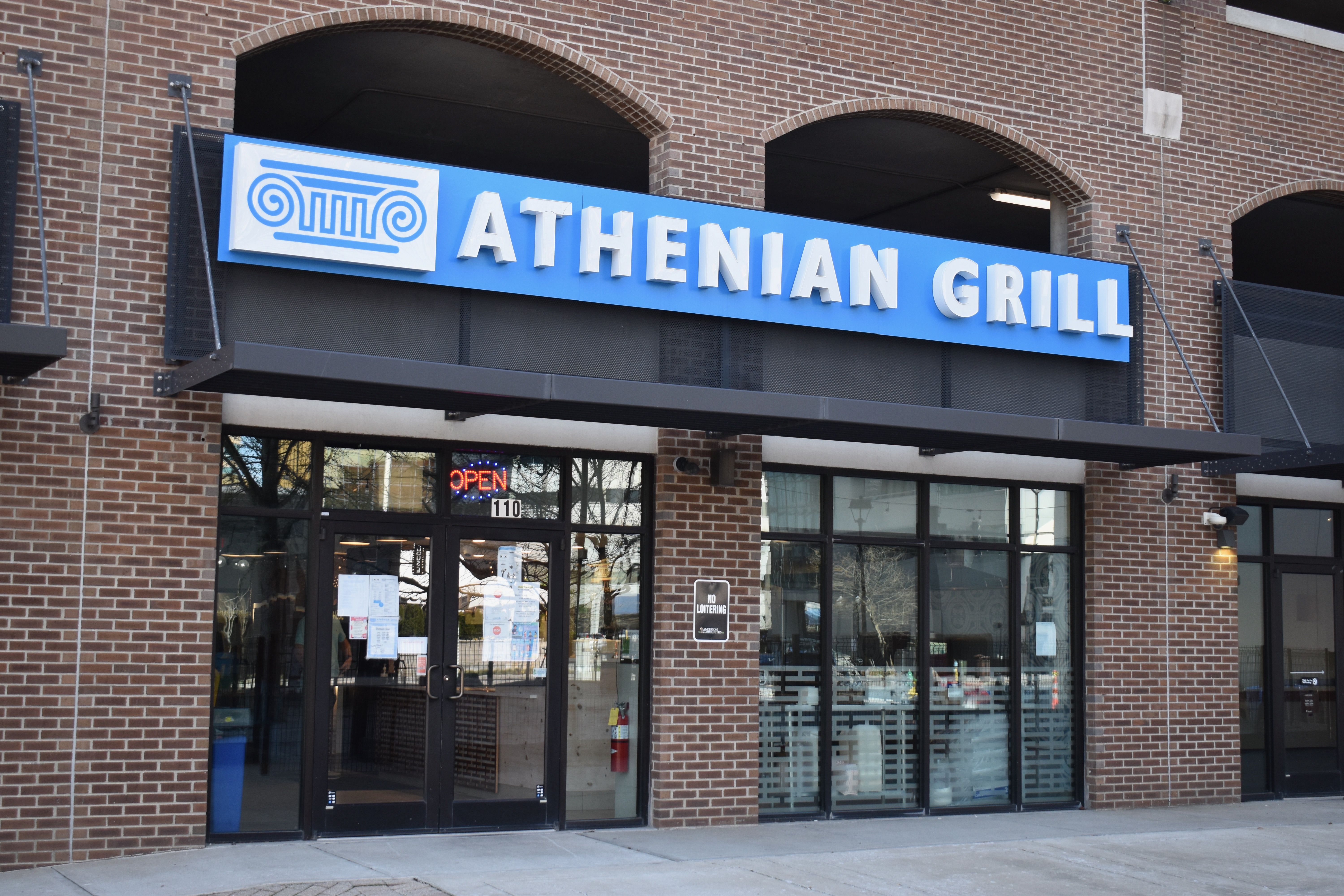 At last Greek food has returned to downtown Lexington. Since the demise of Levas' and The Grecian Garden, this wonderful cuisine has been missing, but after running a food truck for three years, Ilias Pappas opened the Athenian Grille in Chevy Chase, has since opened two other locations, and has now opened downtown. The food is authentic and wonderful. If you just want lunch or a quick bite, there are Lamb, Chicken, Sausage, Souvlaki (shishkebab) and Veggie Gyros ("Heroes"), a famous Greek sandwich. For Appetizers, you can pick from Avgolemono (chicken, rice, egg, lemon) Soup, Greek Salad and Horiatki (tomatoes, cucumbers, onions, peppers, feta cheese, olives and classic Greek dressing). But the heart of the menu is the Dinner Entree list : Mousaka (eggplant, spiced meat and bechamel sauce), Pastitsio (ground beef, pasta and bechamel sauce), Spanakopita (spinach pie with eggs and other vegetables), Greek Beef Stew and Cypriot Meatballs. Sides include Lemon Potatoes, Basmati (long grain) Rice and Roasted Vegetables. This location is in the Public Library building, facing Limestone Street across Phoenix Park. |