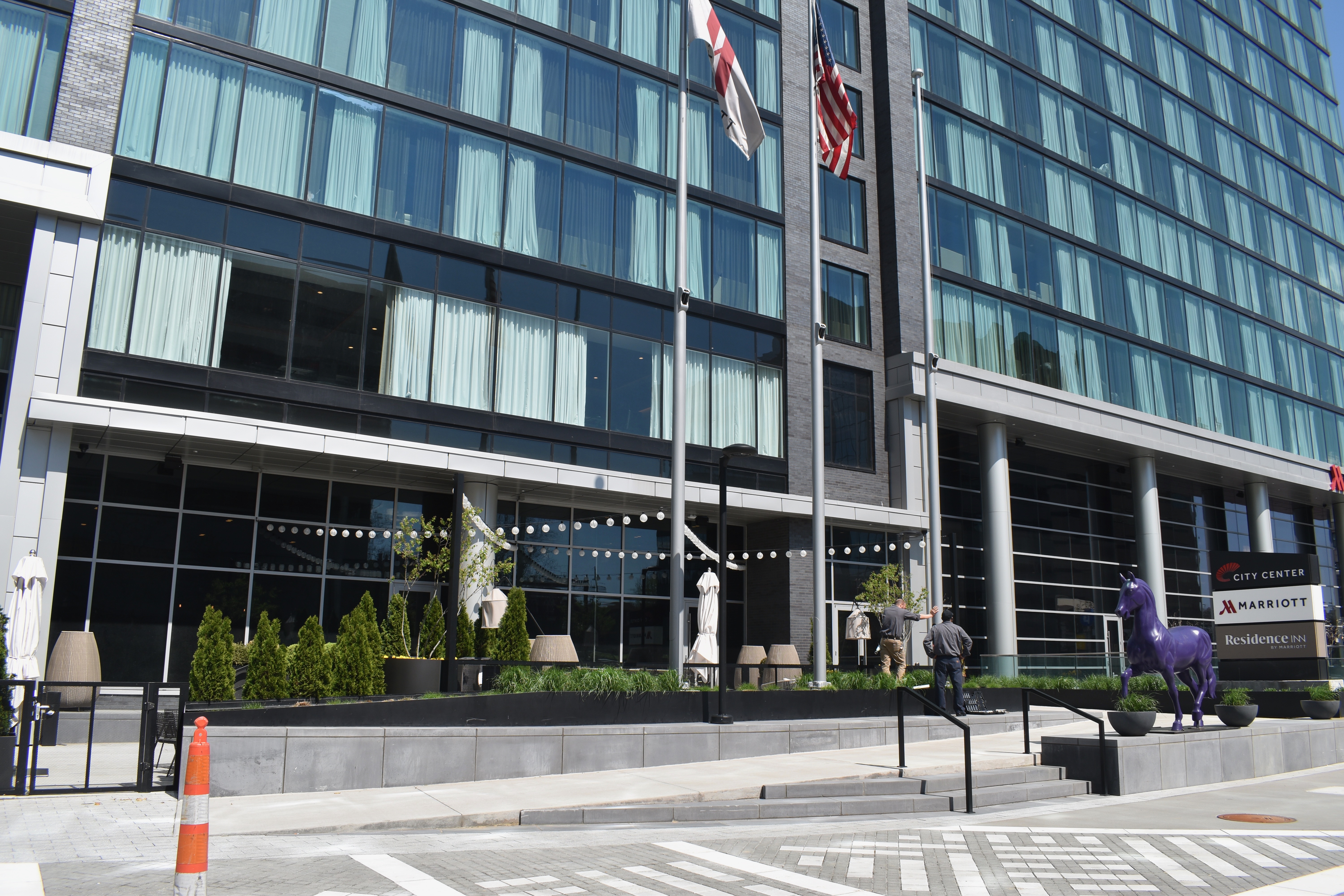 | At a time when many cities have struggling downtowns, Lexington is fortunate to have one that is thriving. In addition to beautiful small parks, such as Triangle Park shown above, modern hotels as shown at right, Rupp Arena hosting basketball, rodeos, concerts and circuses, and The Opera House with its professional theatre, the downtown also holds 19 restaurants, some of which are among the finest in Kentucky. There's a good mix. You can find French, Contemporary, Steak, Thai, Italian, Classic, Pizza, Southern, etc. In addition to the downtown core, Jefferson Street, two blocks west of the Hyatt, has shown an exciting 21st Century revival with a dozen restaurants, bars and coffee houses. | ![]() |