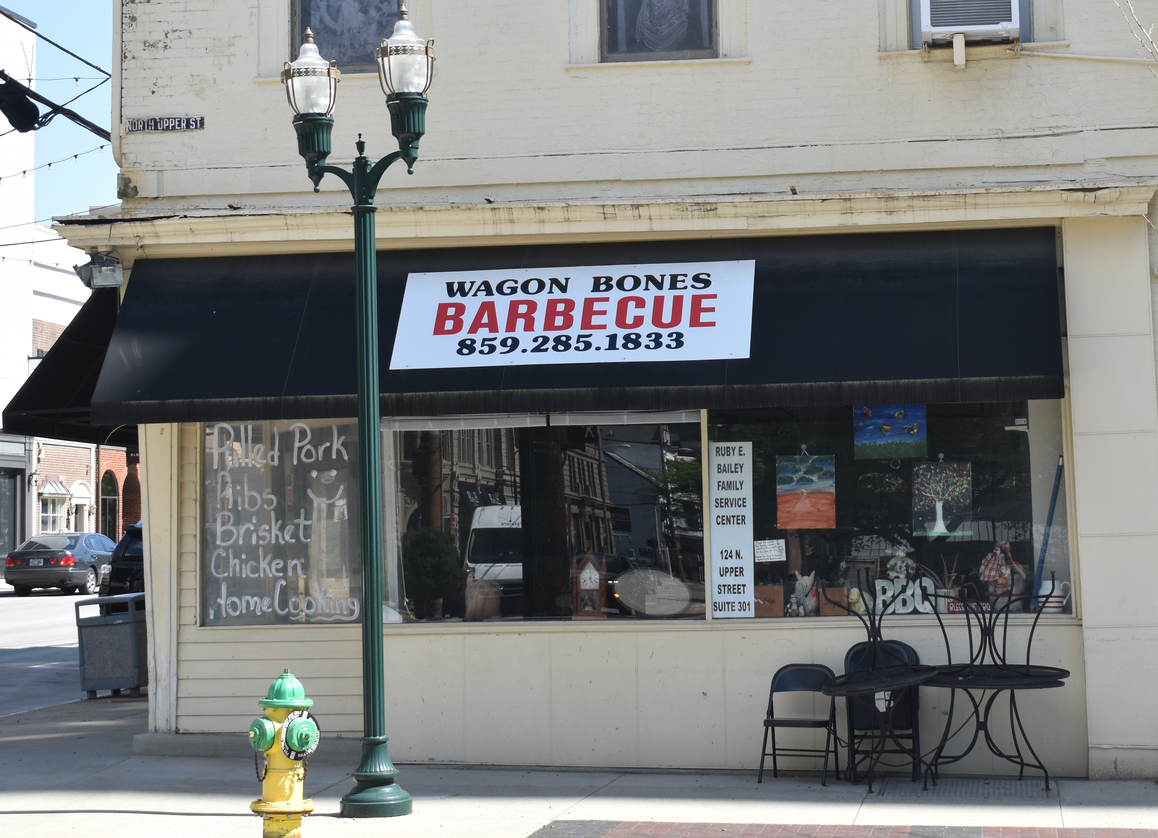 The Wagon Bones Grill is a BBQ restaurant featuring a Western Kentucky spin dry rub. After hours on the open fire pit the pork is juicy, smoky and tender. You get your choice of two sauces : a Pennyrile (vinegar - cayenne - worcestershire) sauce and a tangy sweeter sauce. Their mayo based potato salad is popular. Baked Bean and Coleslaw portions are small. The Cobbler makes a fine dessert. The staff has a curious attitude toward takeout. They don't like it. They want you eating their BBQ in their restaurant and they tell you this several times. They are surely the only restaurant in Lexington which aggressively opposes takeout. We rarely do takeout, but it was entertaining to watch the staff berating customers who wanted their orders to go. The menu is brief. You basically have two choices : Lunch (BBQ & chips) and Dinner (BBQ & two sides). Wagon Bones was hit hard by COVID, closed the restaurant and specialied in catering. They hoped to reopen when restrictions are lifted. |