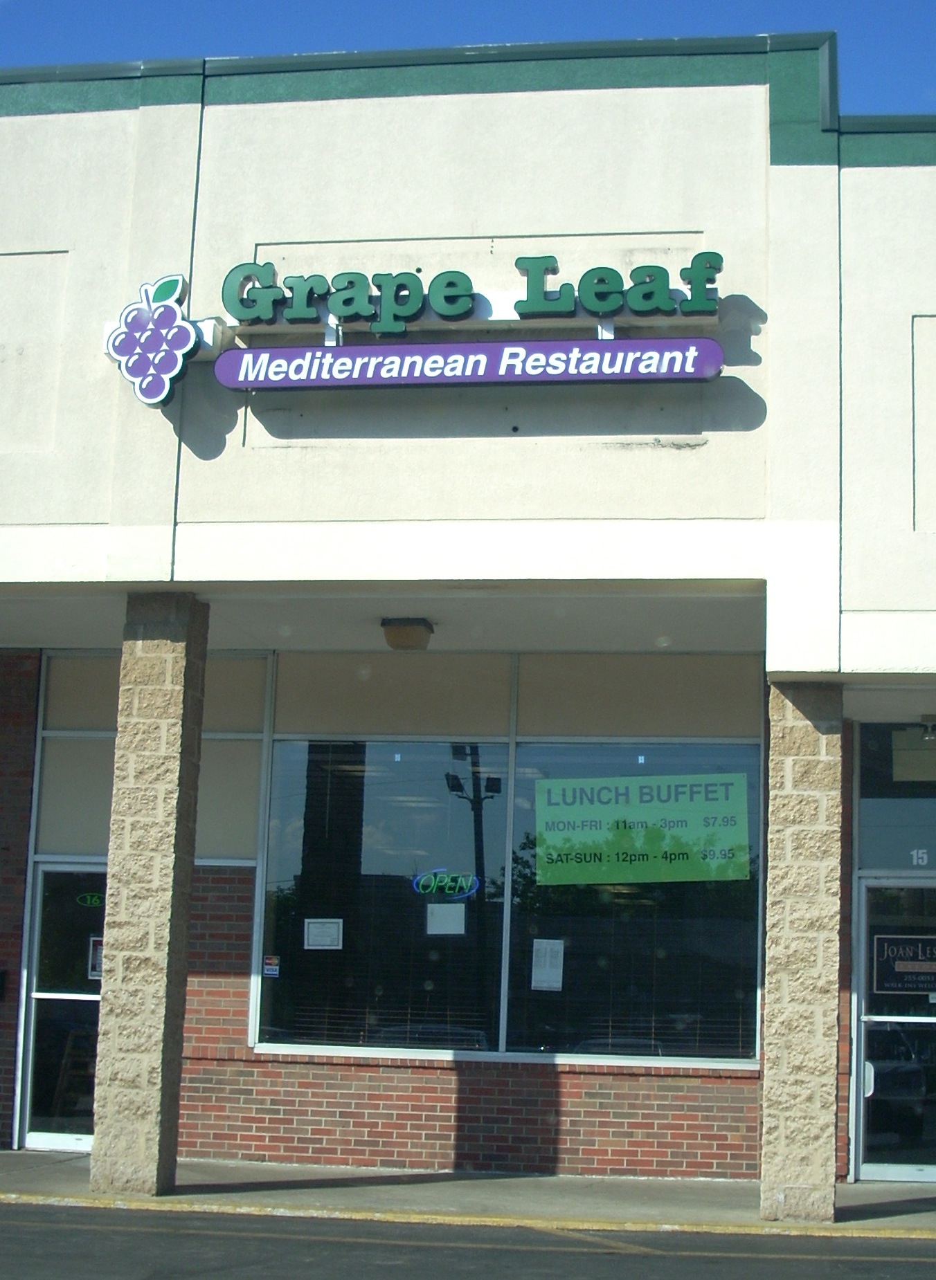 The Grape Leaf is Lexington's newest Mediterranean restaurant. It replaces Istanbul Palace and has the same convenient location for UK students and restaurant goers in the Waller Avenue area. It retains many of Istanbul Palace's popular Turkish menu items. Chef Adnan ("Eddie) Ahmad has had 25 years cooking Mediterranean food at various restaurants in Lexington and elsewhere. There's Turkish Coffee, which if you've never had it, you have to try. If not, at least try Turkish Tea. Whether you're a vegetarian or meat lover, you can find something on this menu which you'll like. There's Lentil Soup (lentils, onion and lemon), or Chicken Lemon Rice Soup. Lunch offers 10 sandwiches : beef, lamb or chicken shawarma, shish tawook, shish kabob, kafta kabob, falafel (with tahini sauce, tomatoes, lettuce, pickles), taboulah (with either hummus or babaganoush), and grape leaf. Of the seven appetizers we like the hummus, baba ghanoush, kubbah balls (ground sirloin mised with burgul, onions and pine nuts), and Stuffed Grape Leaves (rice, ground beef and tomato). Greek, Fatoush and Taboule salads are good but we recommend the Fatoush Beef Shawarma Salad. There are 15 entrees, but the best deal on the menu is the Grape Leaf Platter for a party of two or the Grape Leaf Dish for a party of five. They're samplers of all the other entrees for $15 or $45. Among the items on the Dish are three skewers each of kefta, chicken and kabob, five kubbah balls, five stuffed grape leaves with meat and falafel pieces served with rice. This is A LOT of food. However, there are three seafood dishes (shrimp, tilapia and salmon), four kabob skewers (beef, chicken, kefta, or lamb), and three shawarma dishes. Save room for dessert : Baklava and Kanafa. There is a Lunch Buffet from 11 to 3 for $7.95 and a Saturday Buffet from noon to 4 for $9.95 (both including 16 dishes to choose from) . 393 Waller Avenue. From downtown, take South Broadway to The Campbell House / St. Joseph Hospital. Turn left onto Waller, left at the first light, right into the mall and look to your left. They also do takeout and catering for any size group. The menu is Halal. The Grape Leaf is closed on Sundays. |