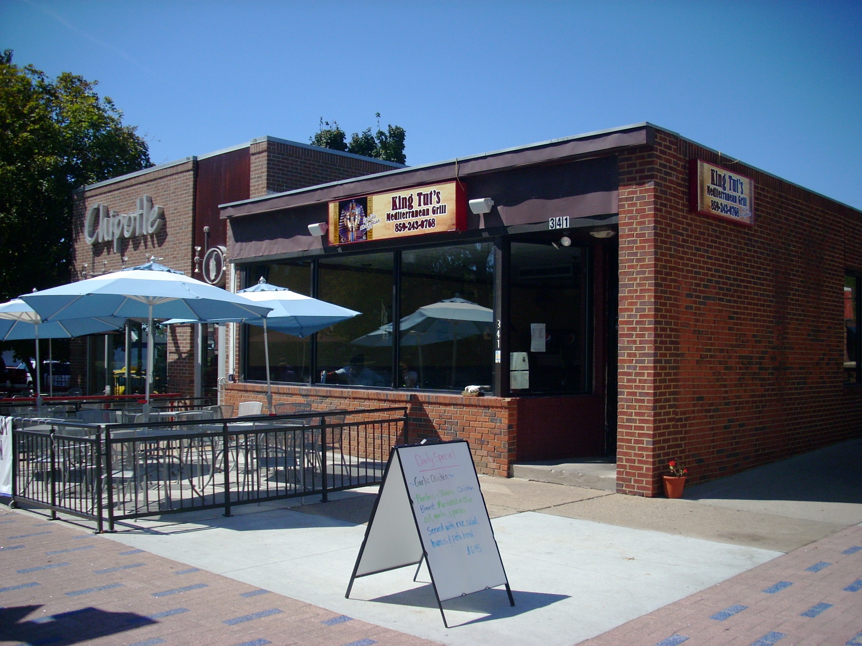 King Tut's opened September 1 on the site of the former Punjab. The facility is half its former size as Mellow Mushroom has taken over the rear, adding a separate entrance. King Tut offers primarily a Turkish menu with items added from Greek. (We're not sure where Egyptian Tut fits into this theming.) The Appetizers are familiar classics: Hummos (dip of chick peas, garlic, lemon and sesame), Falafel (ground dried veggie patty in Tahini Sauce), Baba Ganuje (baked eggplant, garlic, lemon, sesame), Stuffed Grape Leaves (containing veggies and rice), and Kibbi (cracked wheat shell stuffed with beef, onions and spices). You should order a cup of the Soup of the Day; they all tend to have a rather delicate taste. It's hard to beat their Greek Salad (mixed greens with black olives and feta cheese), but the college girls from the dorms across the street really like the Tabouleh (Lebanese parsley, diced tomatoes, onion, cracked wheat and lemon). There are eight entrees. If we're eating alone, we like their Shish Kabob (skewer of charbroiled tenderloin, onion and green peppers) and Kofta Kabob (beef, parsley, onion and spices). Best deal for two is the Mixed Grill Sampler (grape leaves, kibbee, falafel, filet, kabob, chicken, beef) for $19. If you like the traditional vertical broiler, they've got Chicken and Beef Shawarma. Dessert is Pie Of The Day. |