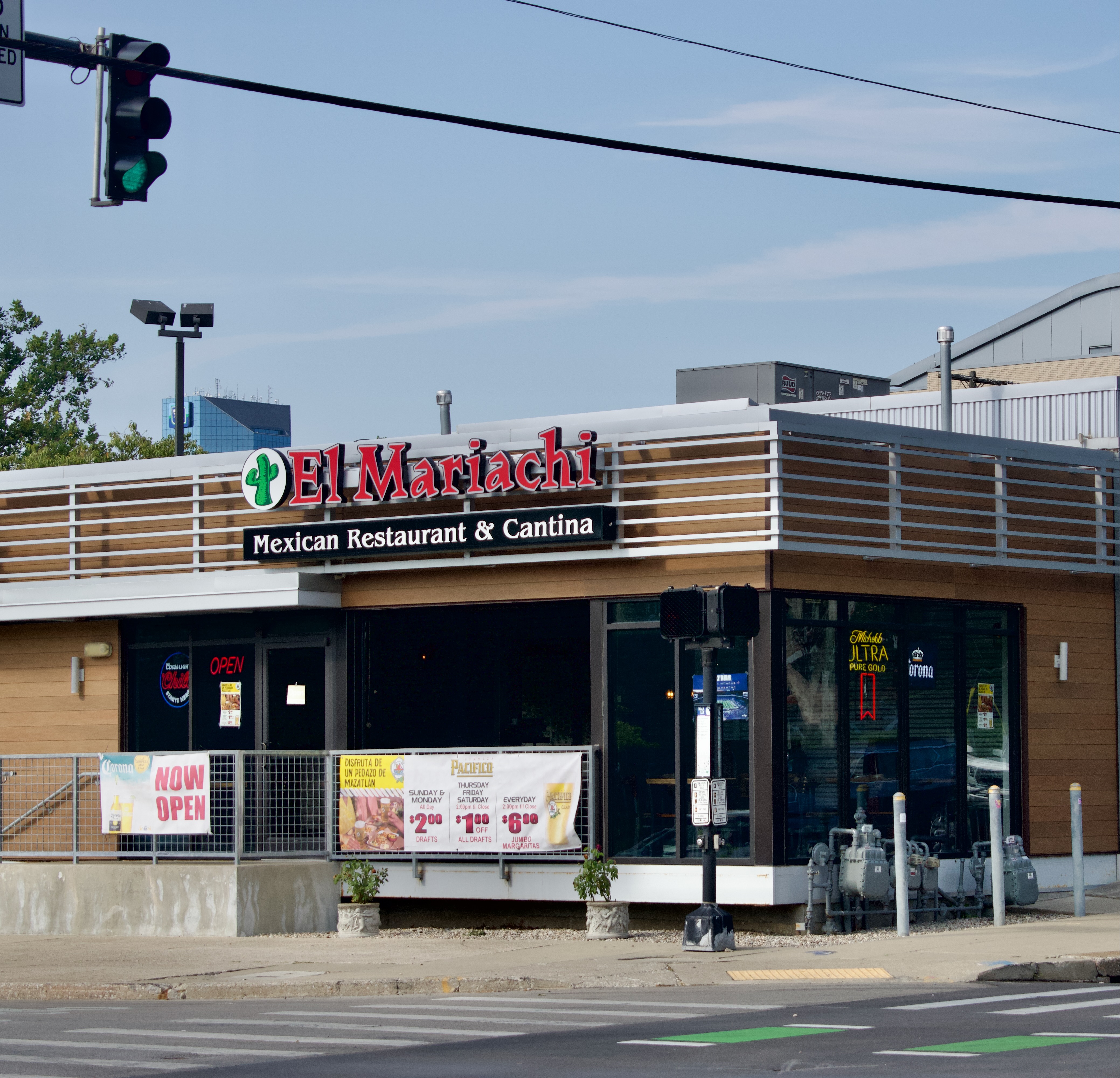El Mariachi is on the corner of Rose Street and Euclid Avenue, in the heart of campus. The basic salsa they bring with their chips is dark and spicy, livelier than elsewhere in Lexington. But there's a companion dish of White Salsa, which is also quite lively. You'll be drinking plenty of water. If the house salsas are too spicy, try the Choriqueso, a mellow cheese dip. Among the appetizers, we like the Carnitas, fried pork tips. They're especially good dipped in one of the salsas or the Choriqueso. On our usual test for Mexican restaurants, Chile Rellenos and Fajitas, Mariachi scores well. They call their rellenos Chiles Pablanos. They use large mild poblano chiles, stuff them with Oaxaca cheese, batter and fry. The Fajitas are standard shrimp, chicken, beef, onions, peppers and spices sizzling on an iron skillet, with guacamole and sour cream on the side. El Mariachi has the best Mexican dessert in town : Xango. They stuff a large burrito with cream cheese and cinammon and bake it. Like its rivals, the interior is bright and lively, but this one is also very spacious, making it appear larger than it really is. This is one of Lexington's best Mexican restaurants so you need to get there early on weekend nights or you'll be waiting for a table. They have a full bar and the usual range of beers and a few wines. Service is often poor or rude so assume you'll have time for a good conversation. But the food's worth the wait and worth putting up with rude waitresses. Assume parking may be a problem; There are plenty of spaces nearby but there are also several popular restaurants here so the spaces may be full. |